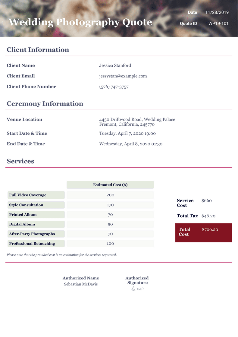 Wedding Photography Quote Template PDF Templates | Jotform